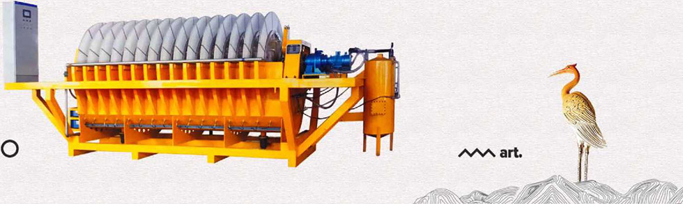 WY系列新式全自动滤泥机,主要包括转子、分配头、搅拌器、刮刀、料浆槽和陶瓷过滤板。在真空的作用下,陶瓷表面形 成一层较厚的颗粒堆积层,滤液通过过滤板过滤至分配头到达真空排液罐。在干燥区滤饼千燥后,旋转至卸料区时被刮下通 过皮带输送至所需地方。